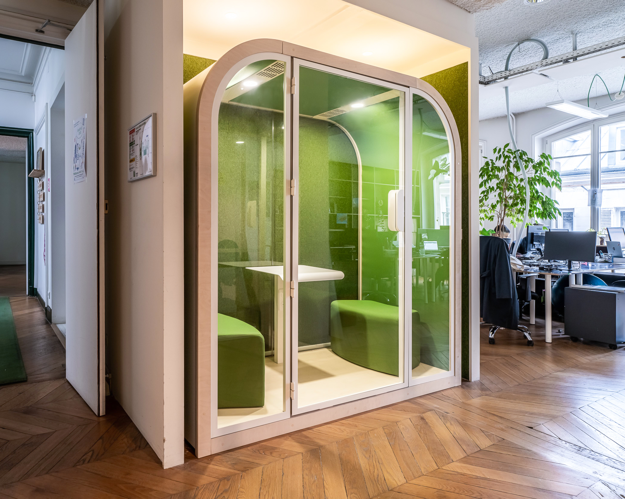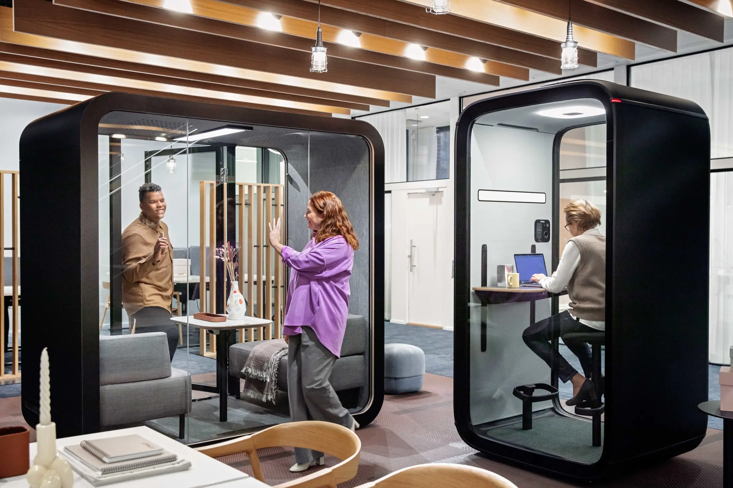Một chiếc booth nhỏ gọn, cách âm hiệu quả, đủ để bạn có thể gọi điện, họp trực tuyến hoặc “đắm mình” trong công việc mà không bị phân tán.